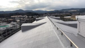 アスファルト防水・塩ビシート防水・ウレタン塗膜防水・外壁補修・シーリング防水と 工事を進行しています👷